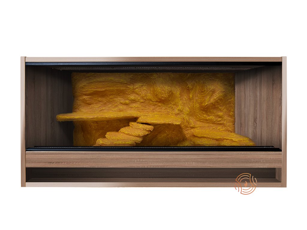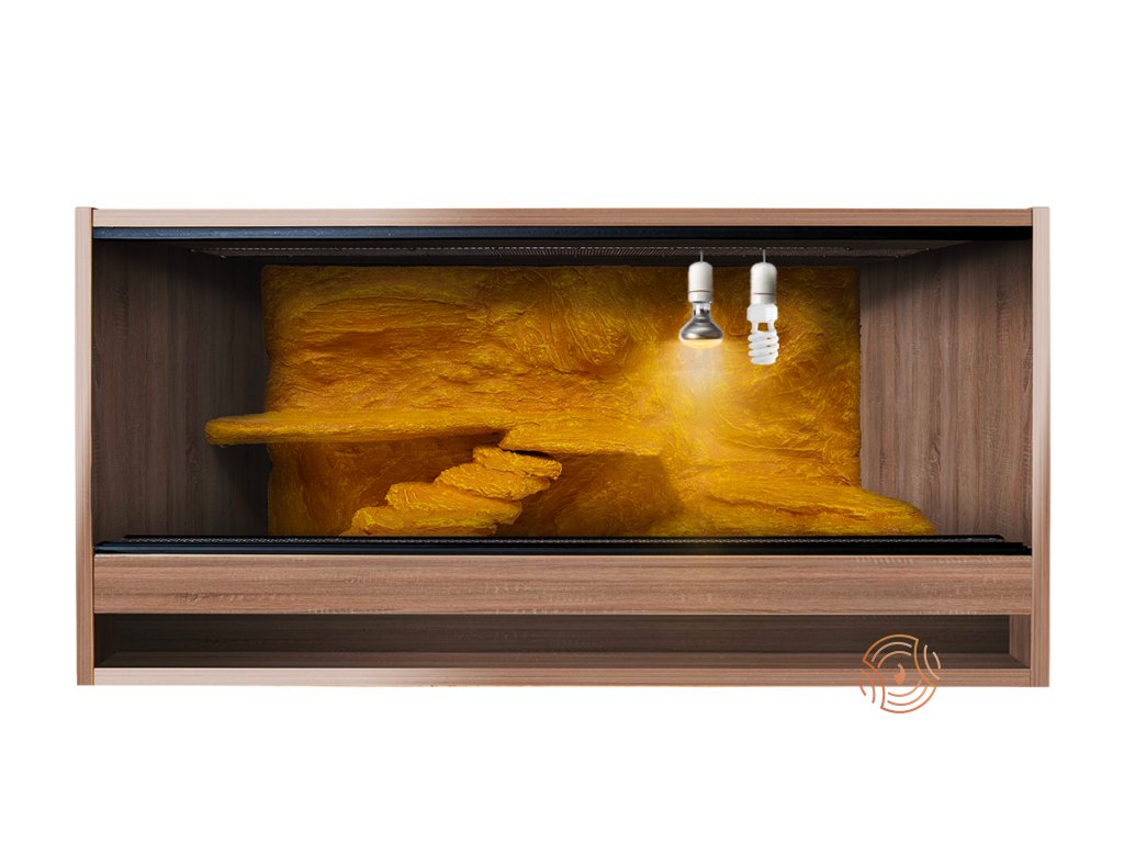 Mezi hlavní výhody patří velká odolnost těchto terárií, výborná tepelná izolace a v neposlední řadě snadná instalace doplňků. K těmto teráriím nabízíme opískované a modelované 3D stěny. Součástí může být skříňka, nebo stolek.