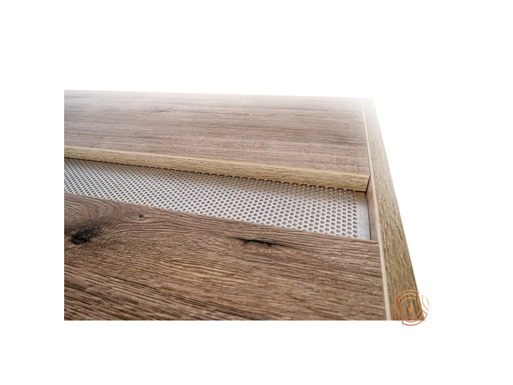 Větrání je řešeno otvory s hliníkovou mřížkou pod dvířky a ve stropě.