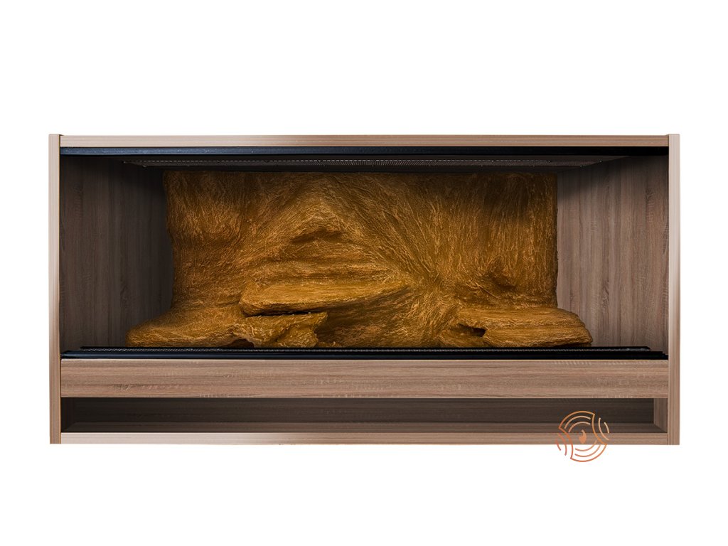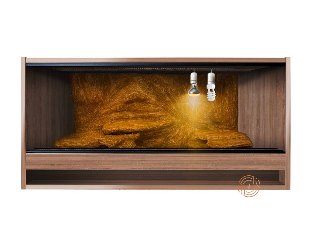 Terárium z lamina 110x60x60 tmavý dub s 3D stěnou vybavené – varianta F