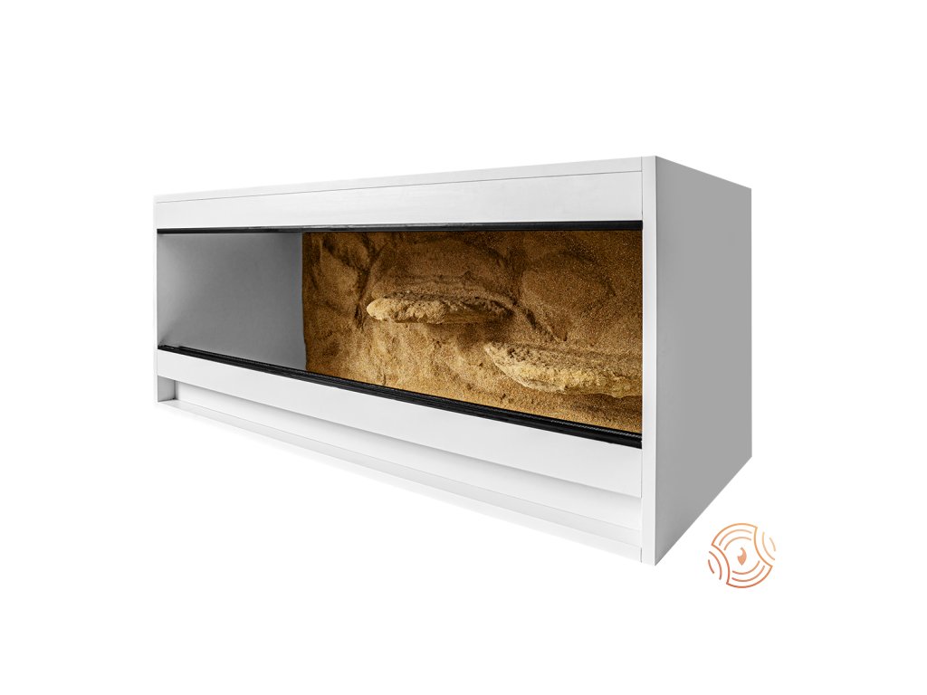 Mezi hlavní výhody patří velká odolnost těchto terárií, výborná tepelná izolace a v neposlední řadě snadná instalace doplňků. K těmto teráriím nabízíme opískované a modelované 3D stěny. Součástí může být skříňka, nebo stolek.