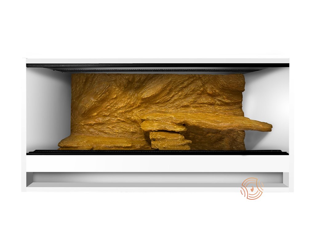 Mezi hlavní výhody patří velká odolnost těchto terárií, výborná tepelná izolace a v neposlední řadě snadná instalace doplňků. K těmto teráriím nabízíme opískované a modelované 3D stěny. Součástí může být skříňka, nebo stolek.