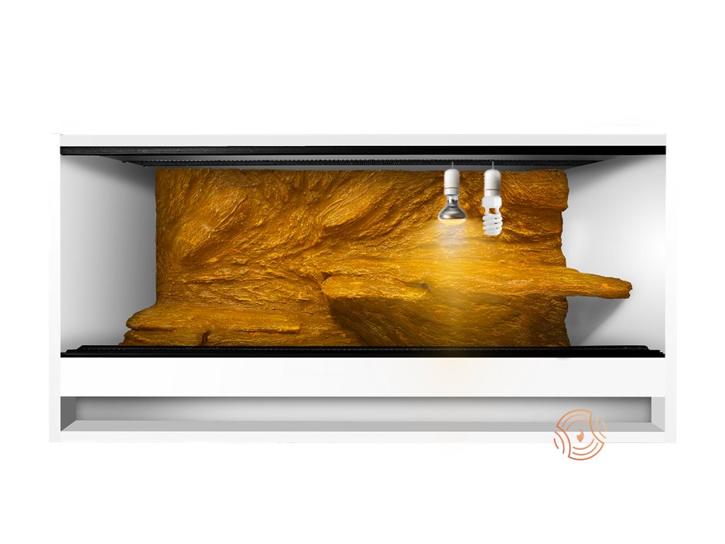 Mezi hlavní výhody patří velká odolnost těchto terárií, výborná tepelná izolace a v neposlední řadě snadná instalace doplňků. K těmto teráriím nabízíme opískované a modelované 3D stěny. Součástí může být skříňka, nebo stolek.