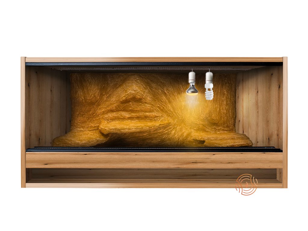 Terárium z lamina 80x40x40 smrk s 3D stěnou vybavené – varianta F