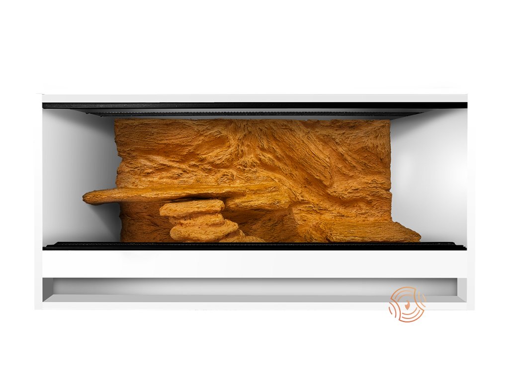 Mezi hlavní výhody patří velká odolnost těchto terárií, výborná tepelná izolace a v neposlední řadě snadná instalace doplňků. K těmto teráriím nabízíme opískované a modelované 3D stěny. Součástí může být skříňka, nebo stolek.
