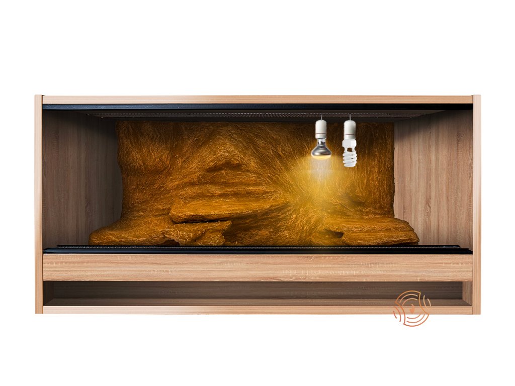 Terárium z lamina 90x50x50 světlý dub s 3D stěnou vybavené – varianta B