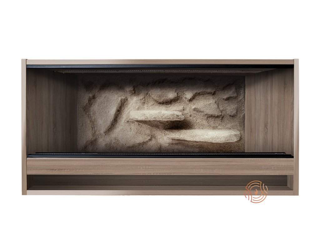 Terárium z lamina 90x50x50 tmavý dub s 3D stěnou – varianta A